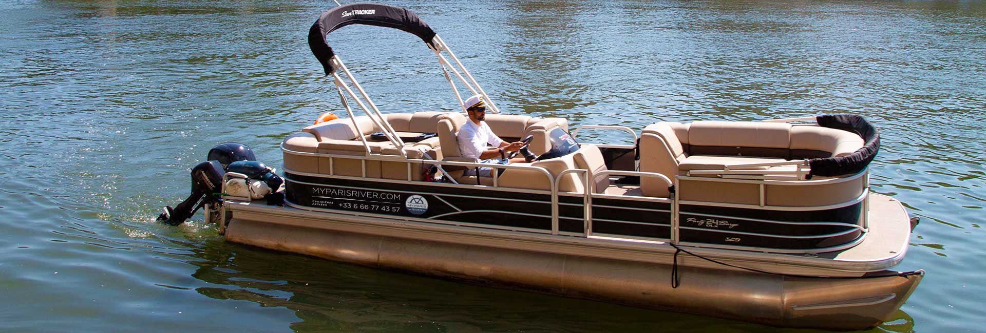 A My Paris River pontoon boat is a true reception space, combining both comfort and safety, and welcoming passengers of all ages — including infants, pregnant women, and seniors.
